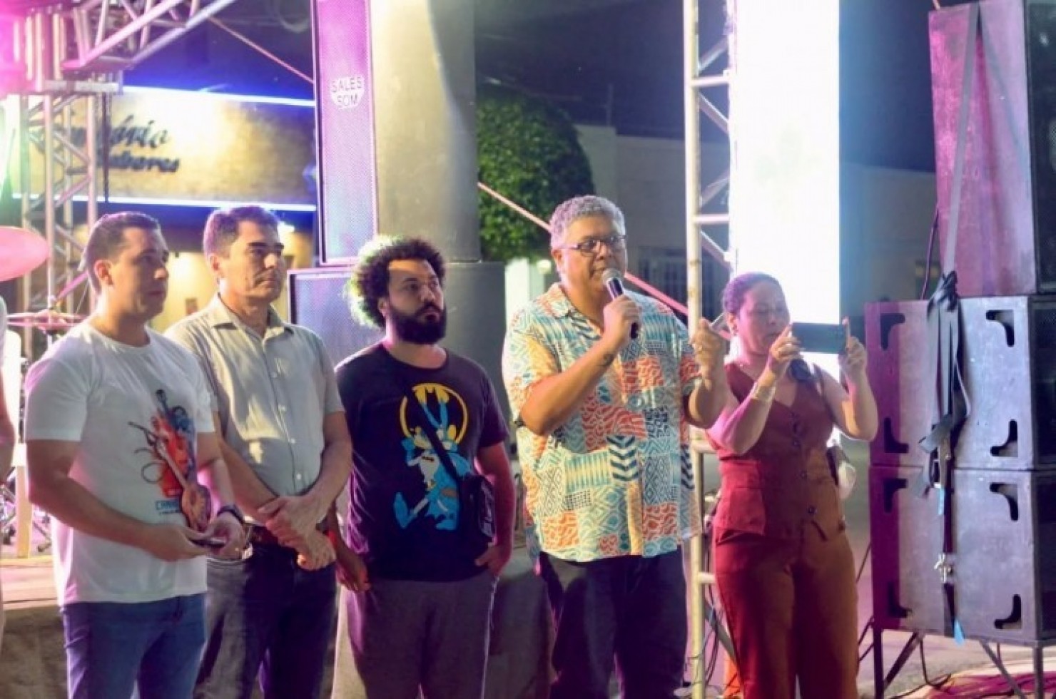 A noite também foi enriquecida com a participação de poetas princesenses, como Edvânia Morato e Emmanuel Arruda, reforçando a força da literatura e da expressão artística no município.