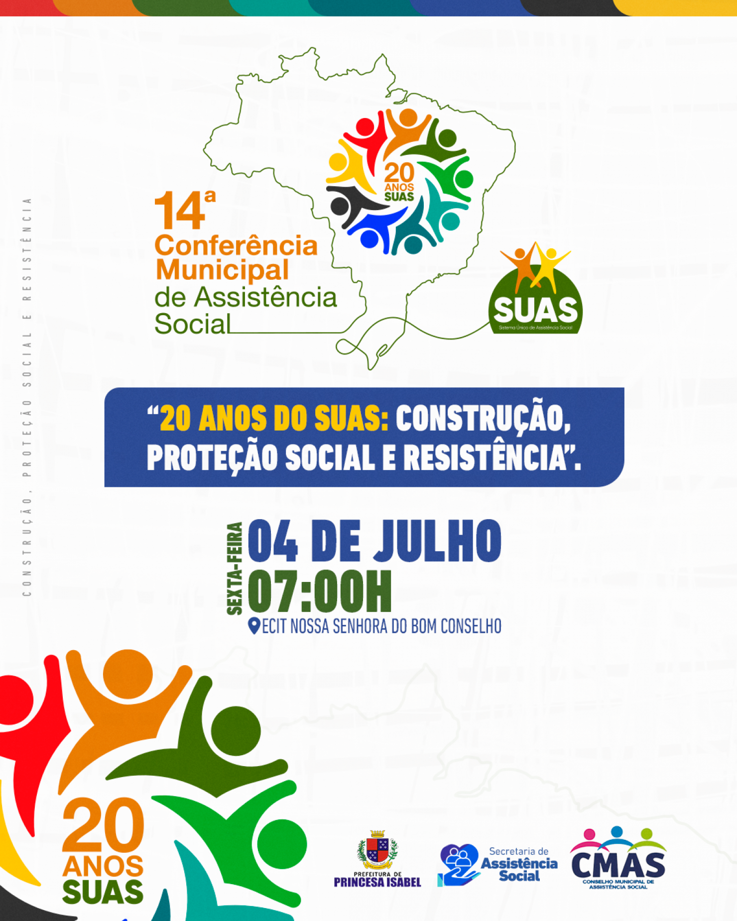 Vem aí a 14a. Conferência Municipal de Assistência Social, um espaço democrático de escuta, diálogo e construção coletiva de propostas que fortalecem o Sistema Único de Assistência Social (SUAS) em nosso município.