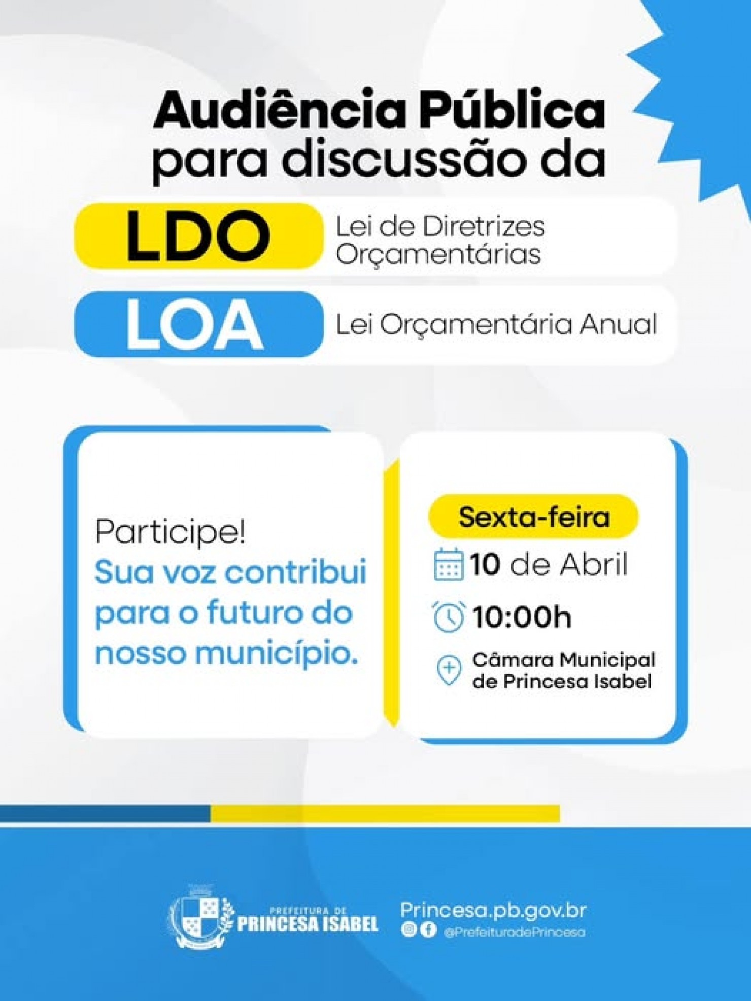 Este é um momento importante para que você possa opinar, sugerir e contribuir com as decisões que impactam diretamente o futuro do nosso município.