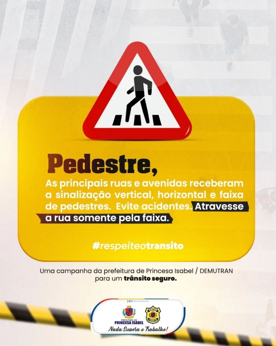Uma campanha da prefeitura de Princesa Isabel / DEMUTRAN para um trânsito seguro.