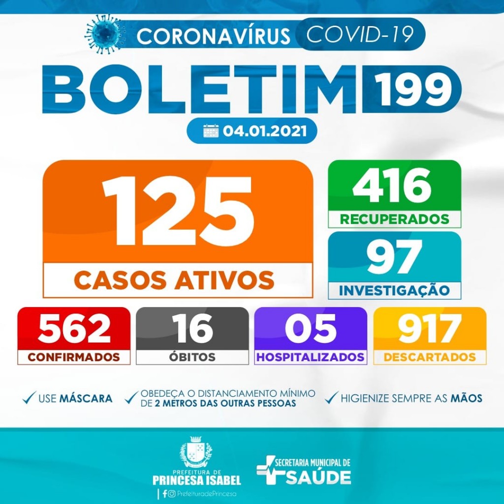 6. O uso de máscaras é obrigatório em todo o município de Princesa Isabel, conforme decreto editado e publicado na íntegra na página oficial do governo municipal e redes sociais da prefeitura.