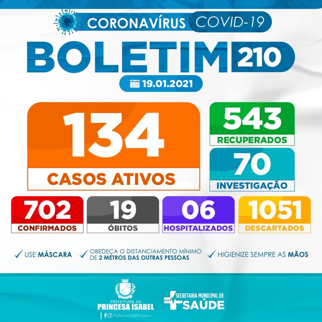 6. O uso de máscaras é obrigatório em todo o município de Princesa Isabel, conforme decreto editado e publicado na íntegra na página oficial do governo municipal e redes sociais da prefeitura.