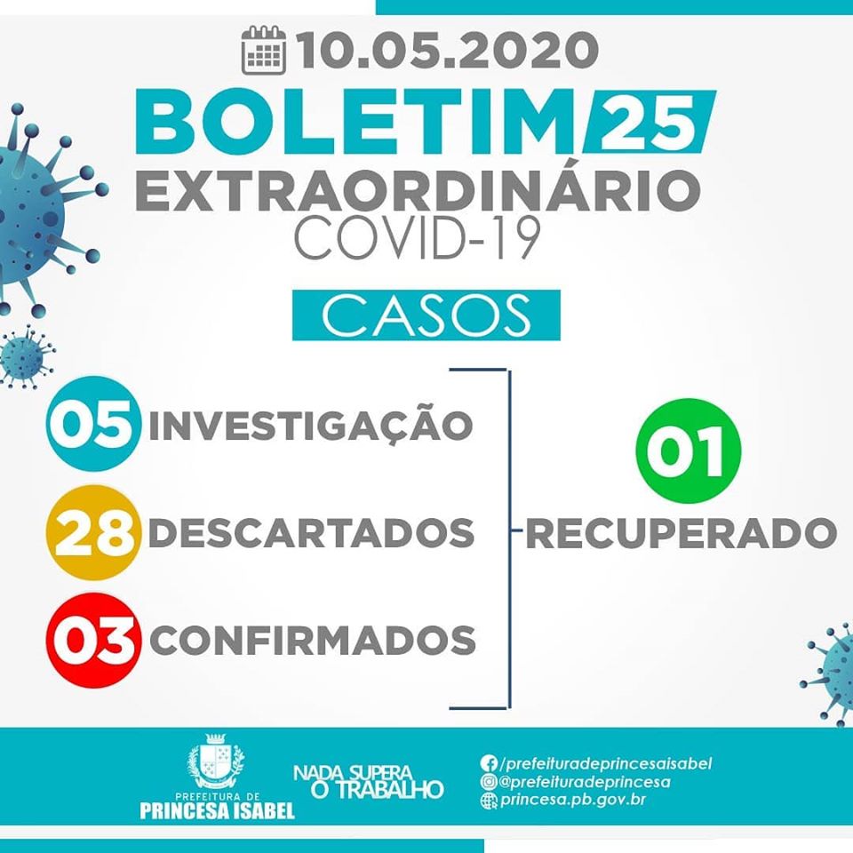 O município de Princesa Isabel registra neste domingo, 10 de maio de 2020, a primeira recuperação da Covid – 19. O paciente que teve o exame com resultado positivo no dia 30 de abril deste ano recebeu alta médica hoje. Esta é uma notícia que traz felicidade a todos nós. Seguimos orientando sobre a necessidade do isolamento social, distanciamento mínimo de 1 metro entre pessoas, uso de máscaras e a higienização das mãos com água, sabão ou álcool gel.