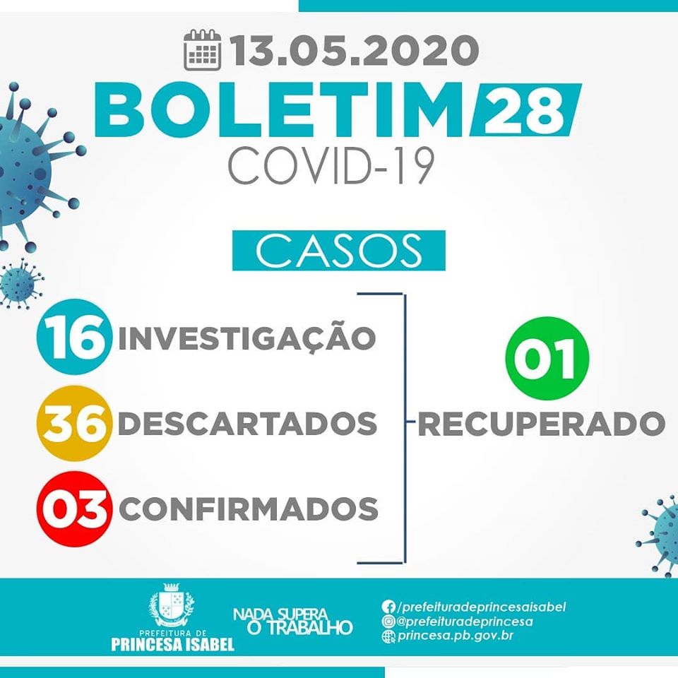 O Comitê Gestor da Crise COVID-19, em Princesa Isabel informa: 1. Até o momento foram atendidos no Hospital Regional Deputado José Pereira Lima, UPA 24h e na Rede de Atenção Básica 55 casos suspeitos de infecção por COVID-19 (Coronavírus); desses, 36 foram descartados, 3 confirmados e 16 estão em investigação. Já foram notificadas e assinaram o Termo de Compromisso da Quarentena nas Barreiras Sanitárias 496 pessoas vindas de outras regiões do país, das quais 331 já cumpriram o isolamento e 165 seguem no período de cumprimento. 2. Reiteramos que todas as medidas utilizadas para atestar como casos suspeitos e casos descartados, seguem rigorosamente o que preconiza o Ministério da Saúde; 3. As determinações do Ministério da Saúde para achatar a curva epidemiológica da disseminação da CODIV-19 continuam massificadas; 4. Segundo a Organização Mundial da Saúde e o Ministério da Saúde, o isolamento social é a mais importante medida de contenção da disseminação do Coronavírus; só saia de casa em situação de extrema necessidade. 5. As determinações contidas no Decreto Municipal 07 de 21 de março de 2020 DEVEM ser cumpridas; sua desobediência está sujeita ao uso da força policial e medidas judiciais. 6. O uso de máscaras é obrigatório em todo o município de Princesa Isabel, conforme decreto editado e publicado na íntegra na página oficial do governo municipal e redes sociais da prefeitura.