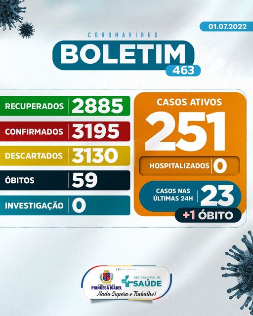O Comitê Gestor da Crise COVID-19, em Princesa Isabel, informa:
