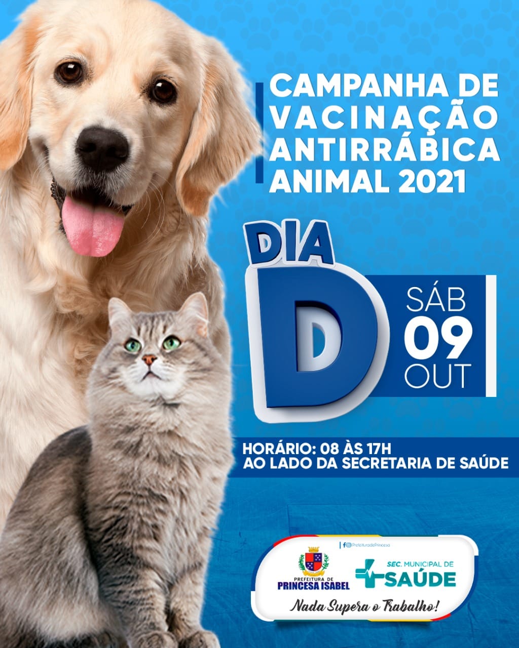 No próximo sábado, 09 de outubro, leve seu cão ou gato para tomar a vacina contra a Raiva Animal. O ponto de vacinação será ao lado da Secretaria de Saúde.