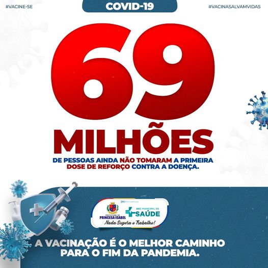 COVID-19: 69 milhões de pessoas ainda não tomaram a primeira dose de reforço contra a doença. A vacinação é o melhor caminho para o fim da pandemia.