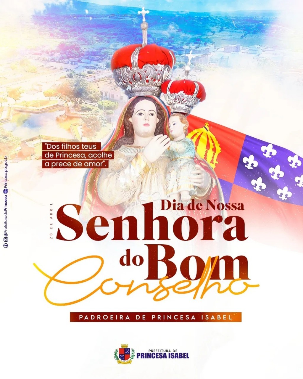 Que Nossa Senhora do Bom Conselho, padroeira do nosso município, interceda por cada um de nós, princesenses, junto ao seu filho Jesus, para que tenhamos sempre saúde, paz e prosperidade.