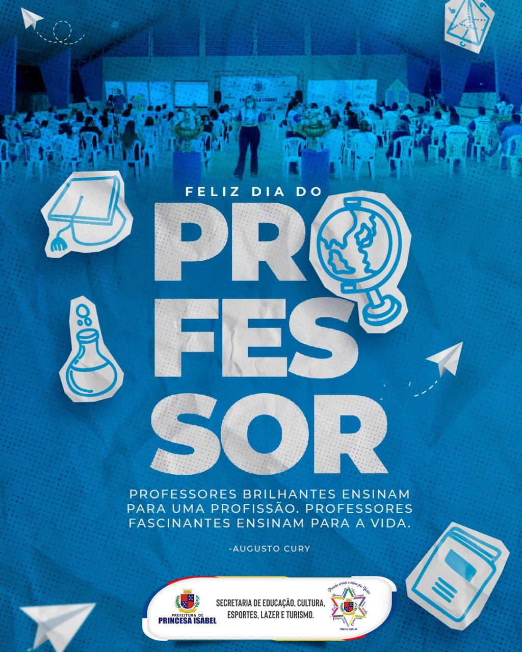 É com muito orgulho que cumprimentamos todos os professores, em especial, os que compõem a Rede Municipal de Educação. O compromisso dos docentes, somados aos importantes investimentos e parcerias, têm elevado o ensino-aprendizagem do nosso município a patamares de destaque nacional. Temos motivos para agradecer. Temos mil motivos para celebrar! Parabéns, professores e professoras!