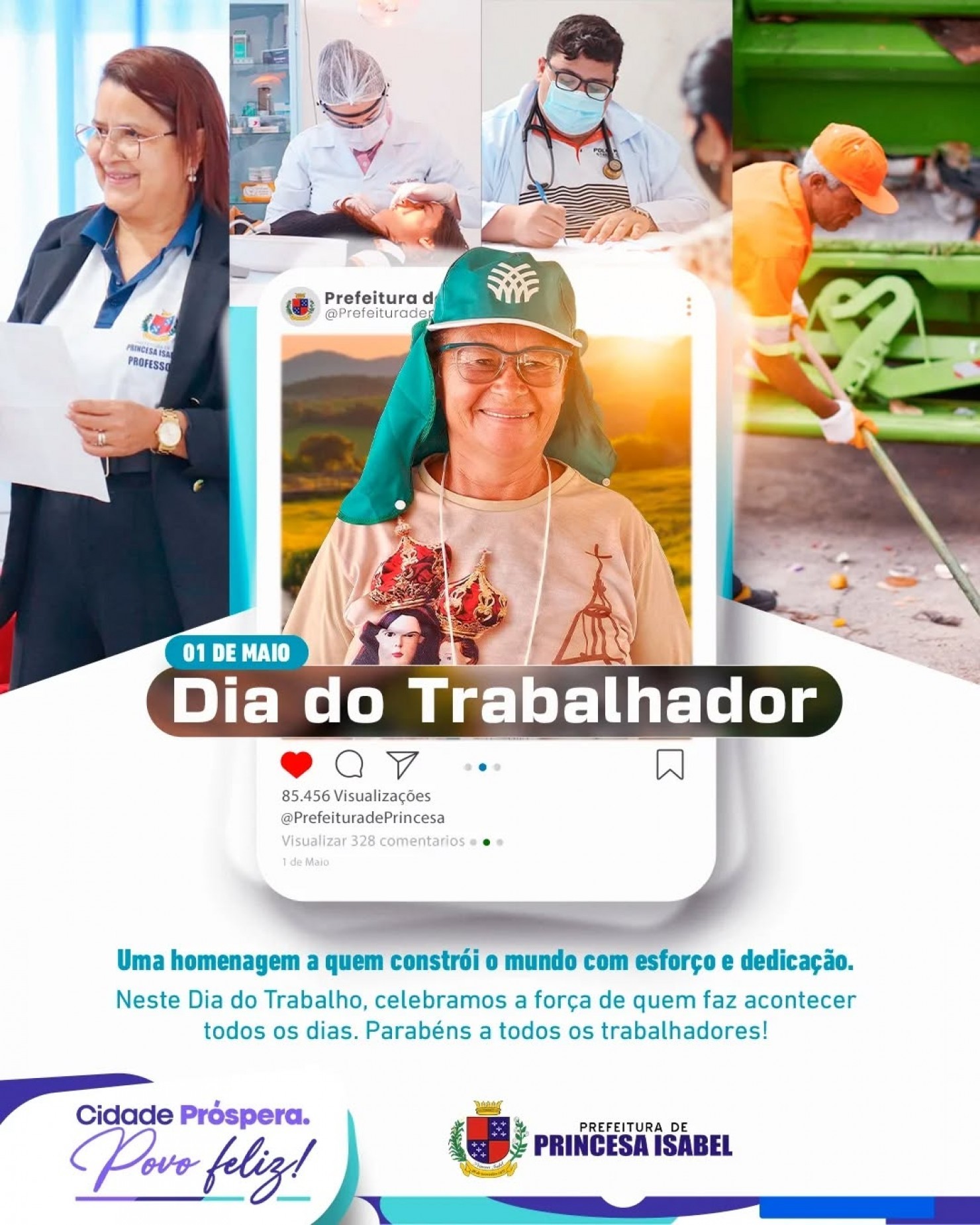 Neste 1º de Maio, homenageamos a força de quem constrói, com dignidade e empenho, o presente e o futuro do nosso município. A cada trabalhador e trabalhadora, o nosso respeito, reconhecimento e gratidão. Juntos seguimos avançando por um lugar cada vez melhor para se viver!