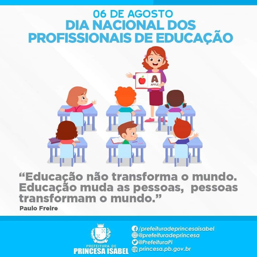 O Governo Municipal de Princesa Isabel cumprimenta todos os profissionais de educação do nosso município. A todos vocês que fazem a educação acontecer, o nosso muito obrigado.