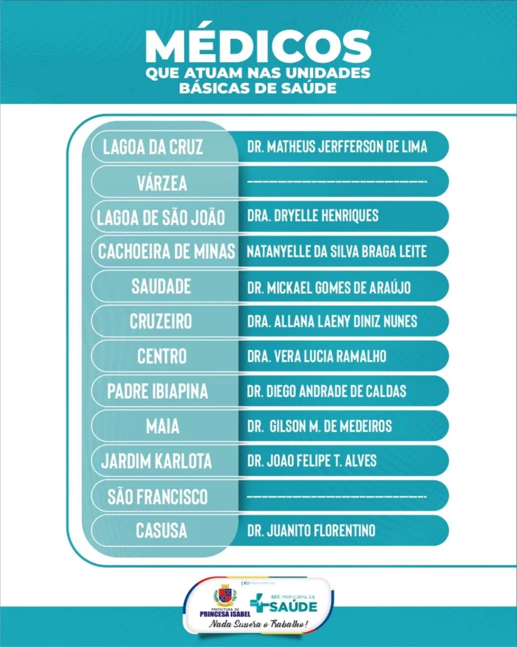 Confira os médicos que atuam nas nossas Unidades Básicas de Saúde!