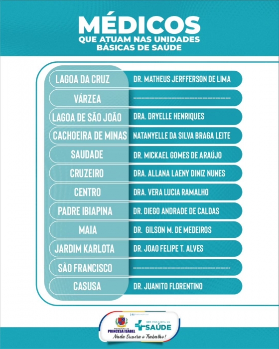 Confira os médicos que atuam nas nossas Unidades Básicas de Saúde!