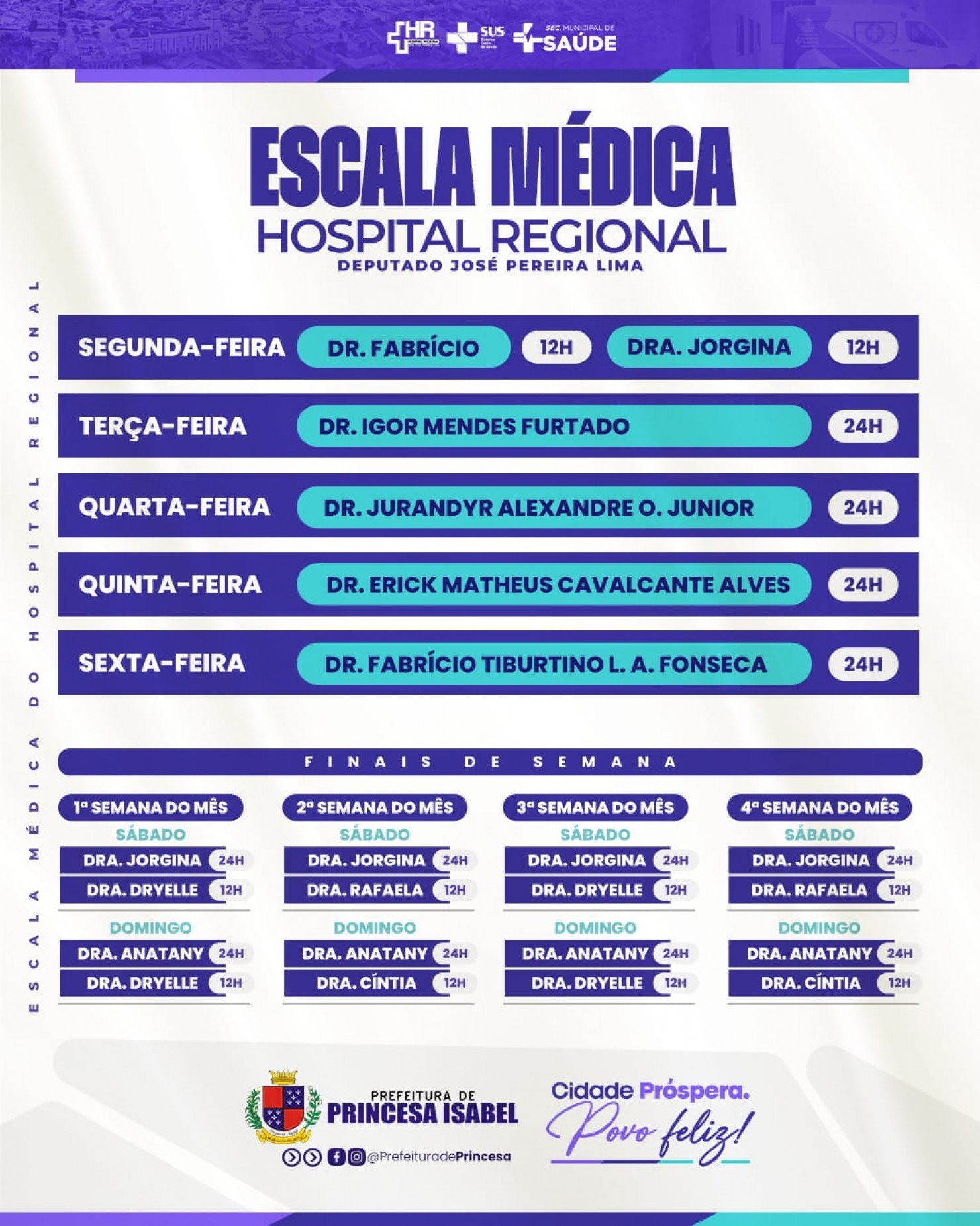 Confira a escala médica do Hospital Regional Deputado José Pereira Lima.