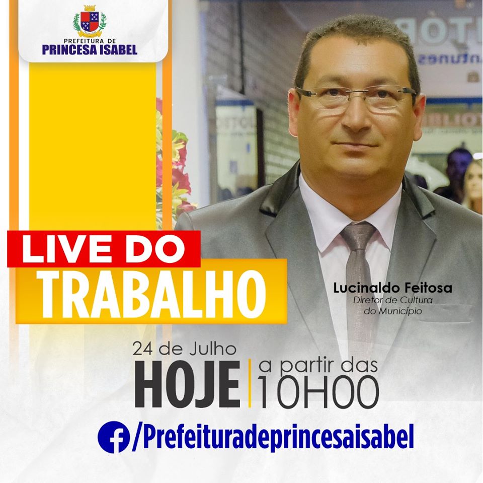 Hoje, logo mais às 10h da manhã, conversaremos com o Diretor Municipal de Cultura, Lucinaldo Feitosa Ventura. Na pauta, o auxílio emergencial para os artistas e pessoas que realizam trabalhos culturais - Lei Aldir Blanc.