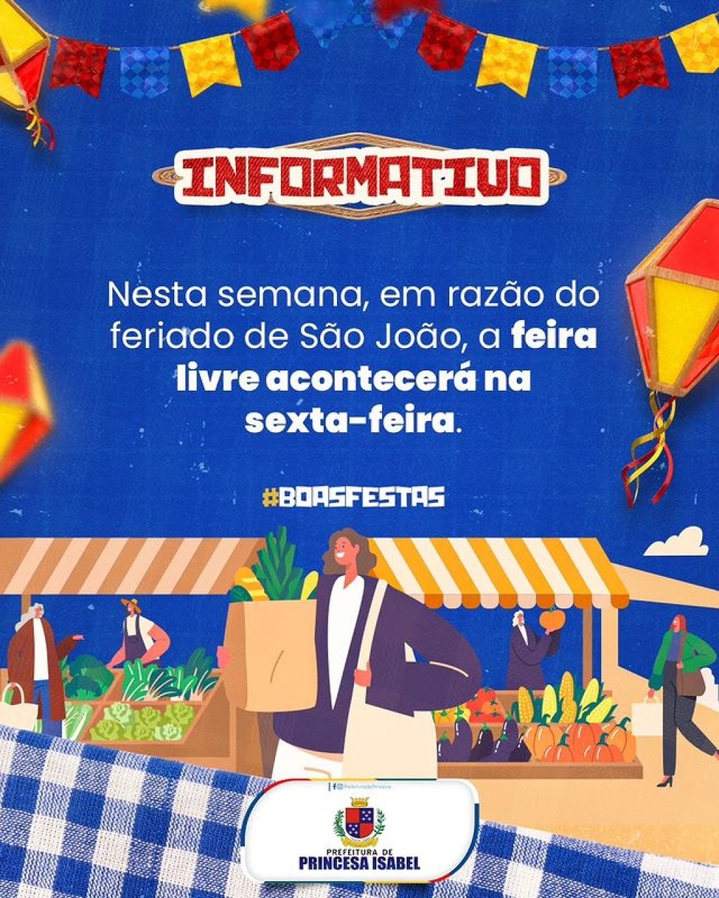 Nesta semana, em razão do feriado de São João, a feira livre acontecerá na sexta-feira.