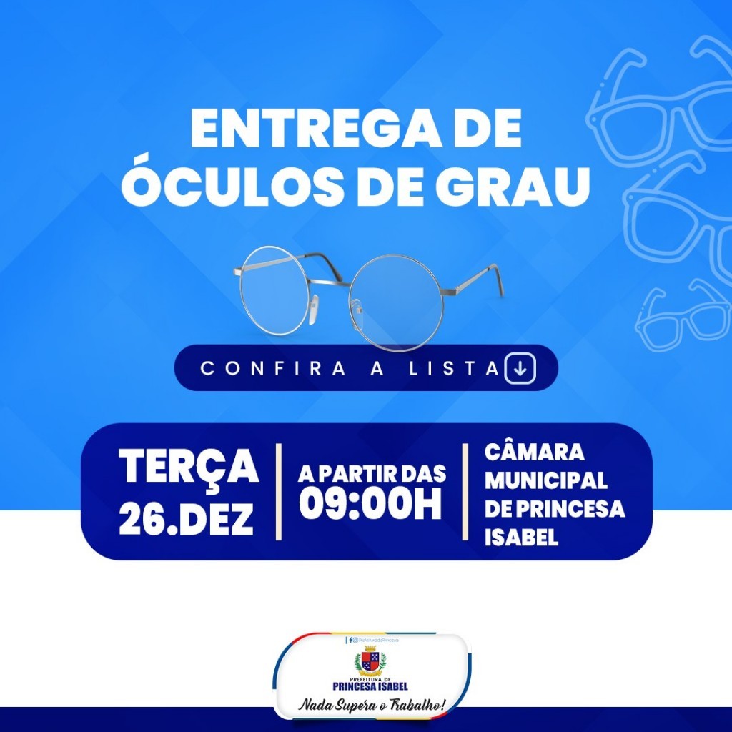 Confira a lista de entrega dos óculos, no link abaixo, pelos nossos Stories, pelo Instagram e a página oficial da Prefeitura.