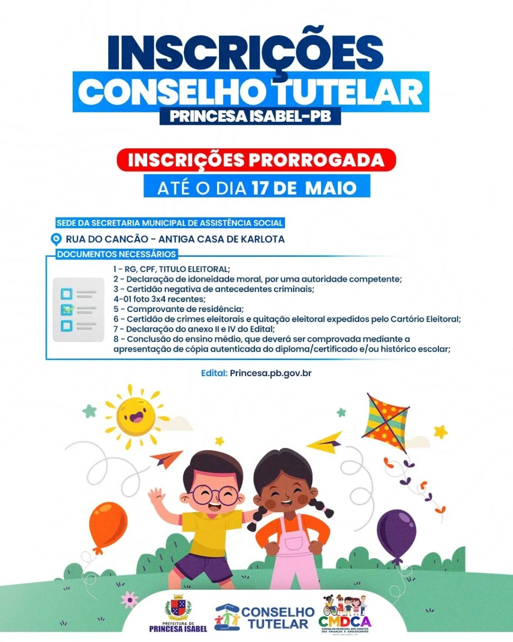 As inscrições para as eleições do Conselho Tutelar foram prorrogadas até o dia 17. Participe! Confiram o edital, através do link na nossa bio.