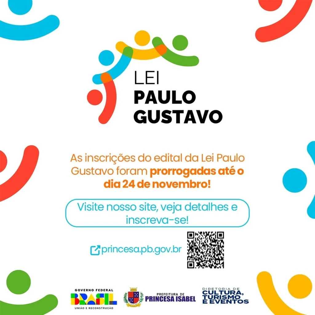 As inscrições do edital da Lei Paulo Gustavo foram prorrogadas até o dia 24 de novembro! visite nosso site, veja detalhes e inscreva-se!