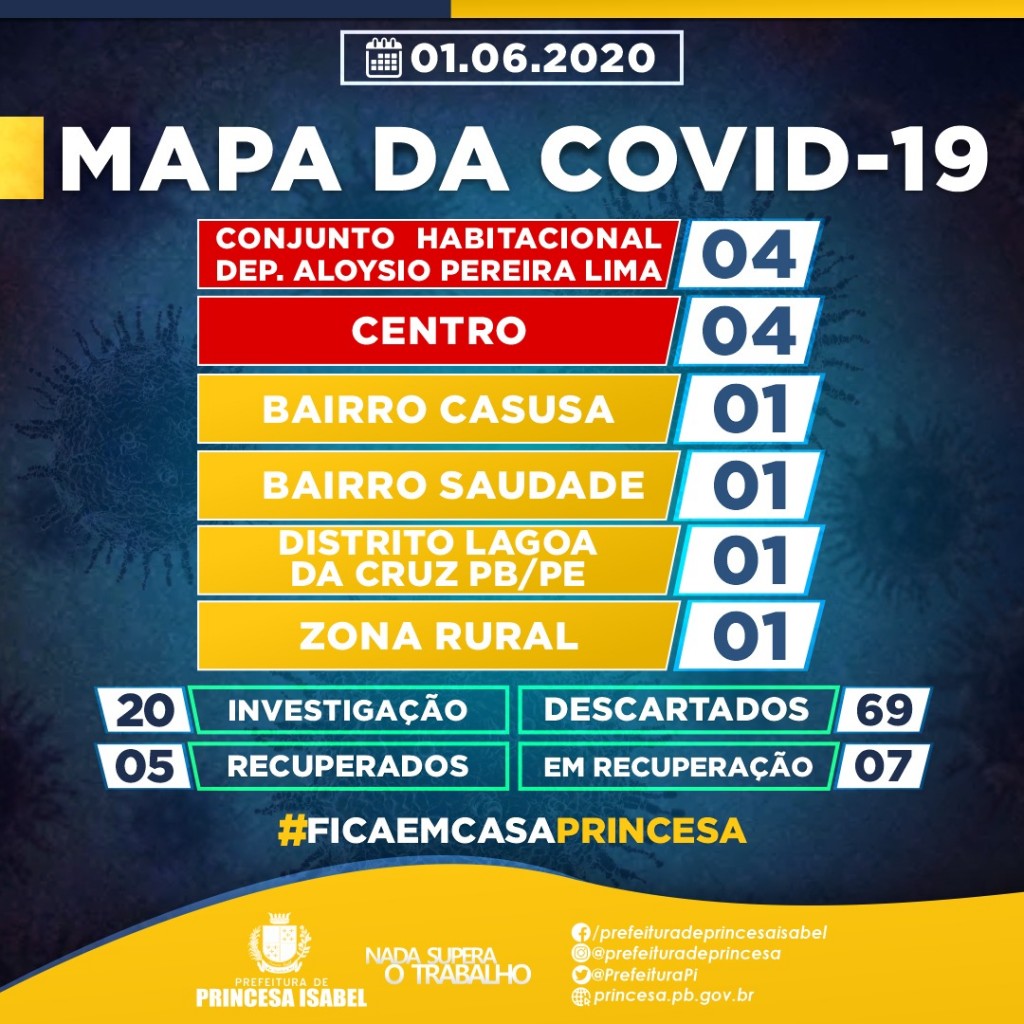 Os casos confirmados da Covid-19 em Princesa Isabel estão distribuídos em regiões e identificados através das circunscrições das Unidades Básicas de Saúde.