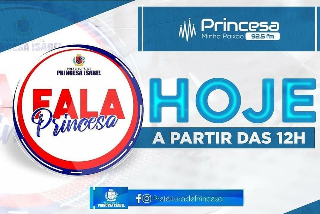 No Programa Fala Princesa desta quarta-feira, 17 de março, teremos as participações do consultor técnico em saúde, José Leudo Farias, da diretora geral do Hospital Regional de Princesa Isabel, Analú Costa e a coordenadora da Rede de Atenção Básica, Gerlane Dias Salvador. Em pauta, as ações da Prefeitura de Princesa Isabel no combate a disseminação do novo coronavírus, análise de impactos sociais e recomendações à sociedade no momento mais crítico da pandemia no Brasil, com ênfase na Paraíba e em Princesa Isabel.
