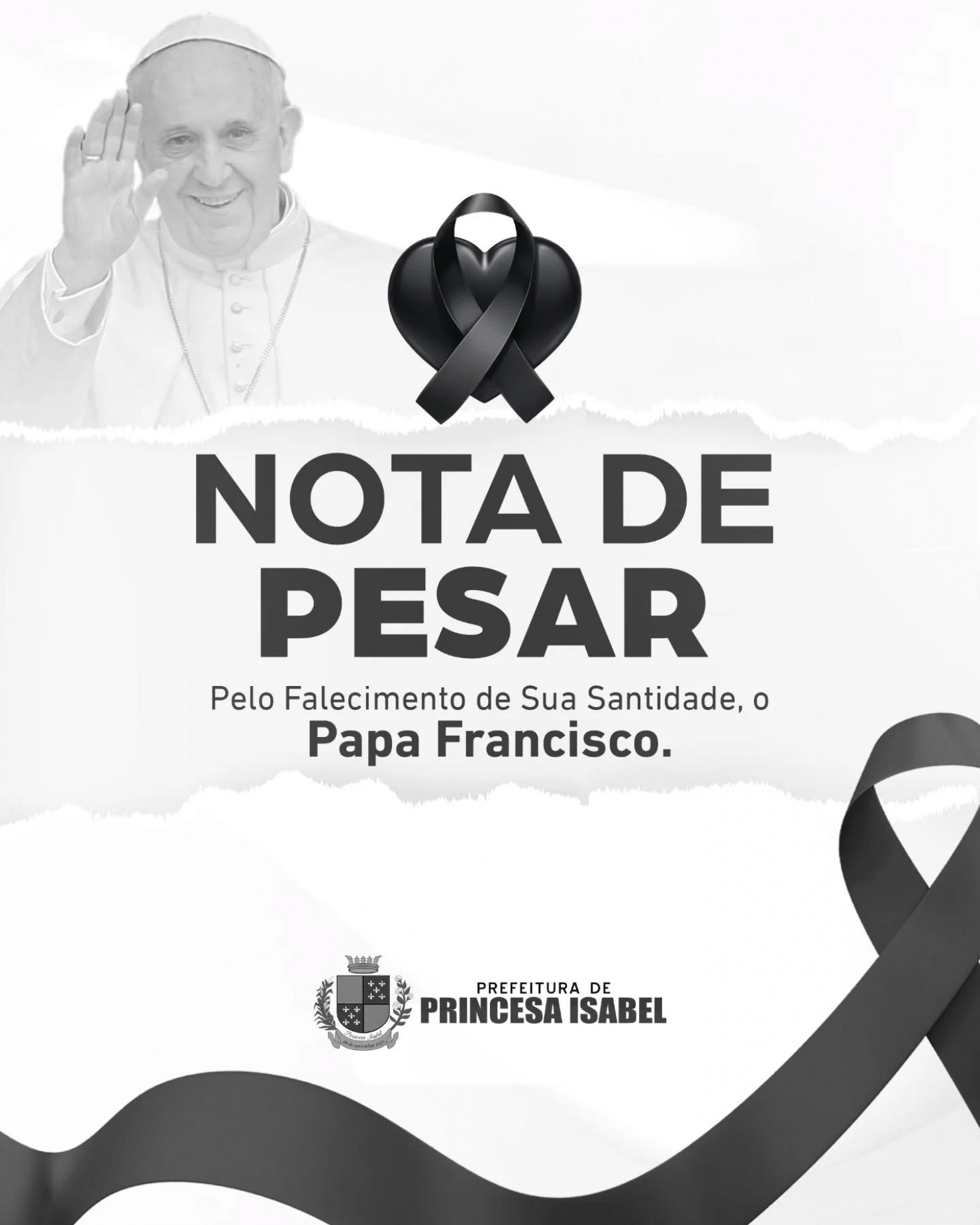 Neste momento de dor, unimo-nos à comunidade católica mundial em oração e solidariedade, agradecendo a Deus pelo legado inspirador que o Santo Padre nos deixa. O governo de Princesa Isabel decreta luto oficial de 07 (sete) dias.