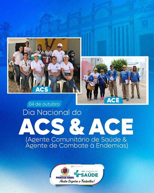 O governo municipal de Princesa Isabel parabeniza os Agentes Comunitários de Saúde e Agentes de Combate às Endemias pela passagem do seu dia. Aproveitamos a data para reafirmar o nosso compromisso com a categoria, respeitando, valorizando e colaborando sempre com o trabalho de vocês.