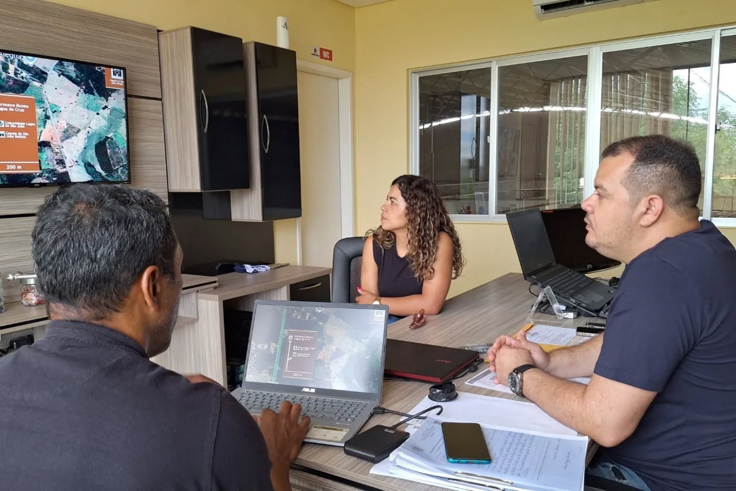 A diretora de Turismo, Carleide Xavier, o consultor da REBELK Consultoria de Turismo, Kleber Lima, e o responsável pelo Departamento Municipal de Trânsito (DEMUTRAN), Silvio Medeiros, estiveram reunidos para apresentar o projeto descritivo da nova sinalização turística do município.