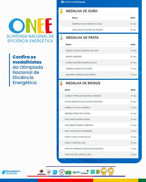 O governo municipal de Princesa Isabel cumprimenta e parabeniza a professora Mércia Rúbia e todos os alunos que participaram desta edição da ONEE.