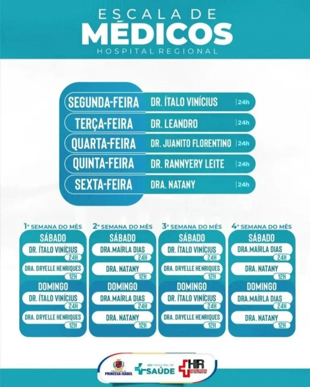Confira a escala médica do Hospital Regional Deputado José Pereira Lima!