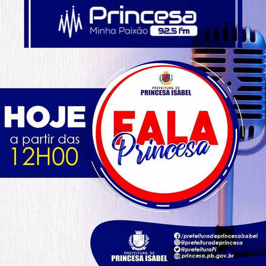 Hoje, no "Fala, Princesa!", o nosso papo será com a Secretária de Saúde, Nininha Lucena, e com a Coordenadora de Atenção Básica, Gerlane Dias. Faremos um balanço das ações de enfrentamento à Covid-19 em Princesa Isabel, o que mudou, o que continua e as novas medidas que deverão ser adotadas. Além disso, falaremos sobre a Rede de Atenção Primária em Saúde e a oferta de Serviços durante a pandemia, saúde do idoso e muito mais.