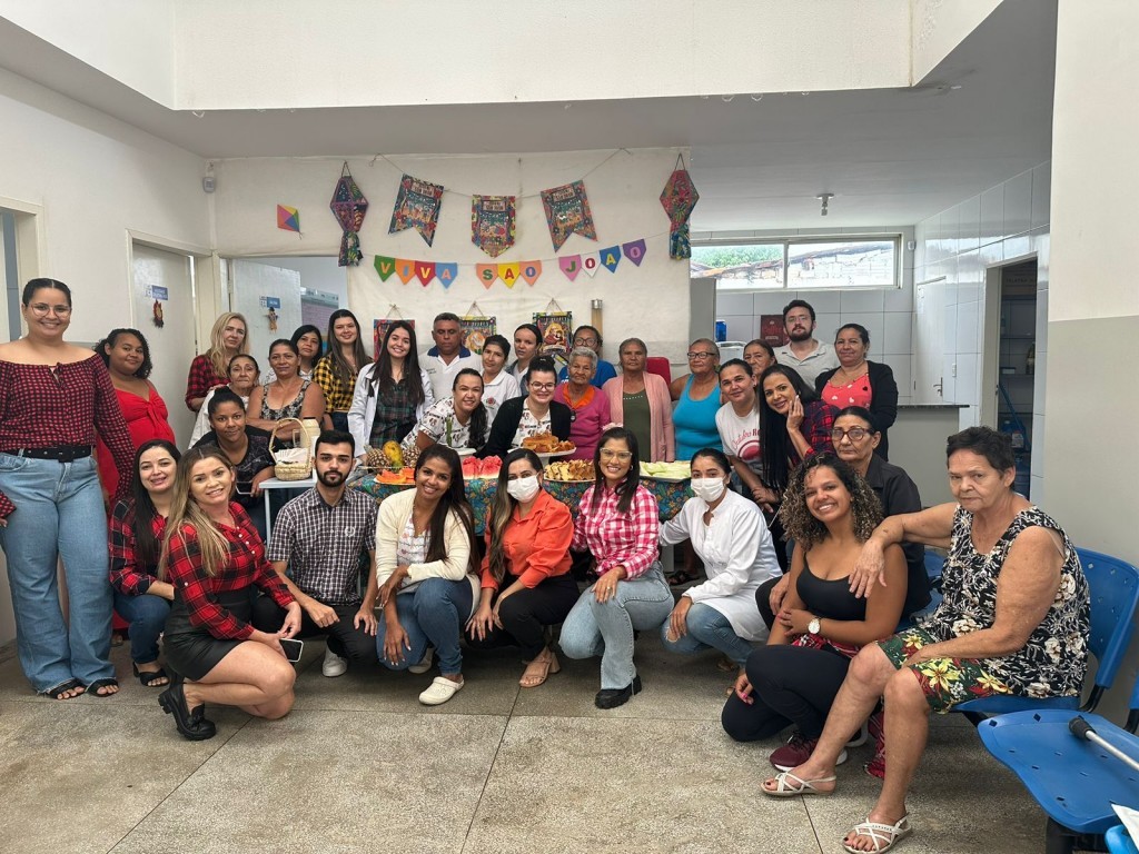 A equipe multiprofissional da Unidade Básica de Saúde do Cruzeiro realizou um café junino com os grupos de hipertensos, diabéticos e sobrepeso.