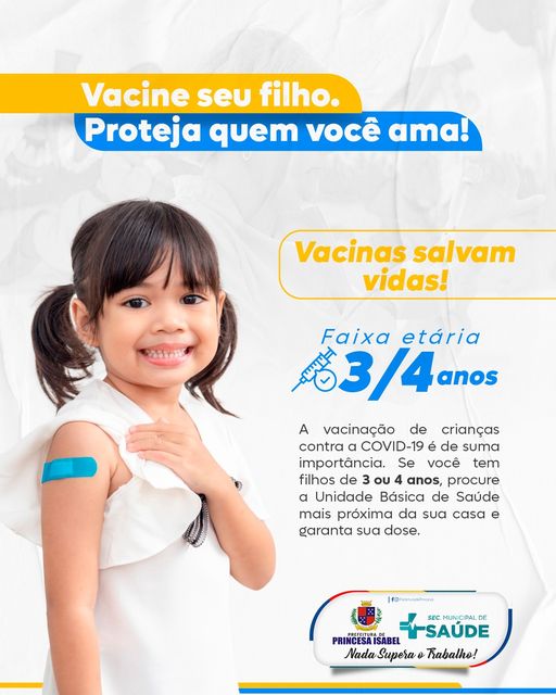 Vamos proteger as nossas crianças também contra a COVID-19. Procure seu Agente de Saúde ou a sua Unidade Básica de Saúde e se informe sobre o cronograma de vacinação.
