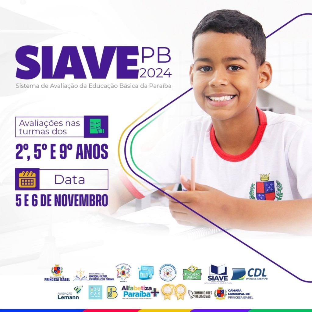 O SIAVE (Sistema de Avaliação da Educação Básica) é uma ferramenta utilizada para monitorar e avaliar a qualidade do ensino – aprendizagem. Ele permite que gestores, educadores e a sociedade em geral acompanhem o desempenho das escolas e dos alunos em relação aos conteúdos e habilidades esperadas para cada etapa da educação básica. Em Princesa Isabel, as turmas dos 2º, 5º e 9º anos serão avaliadas nos dias 5 e 6 de novembro.
