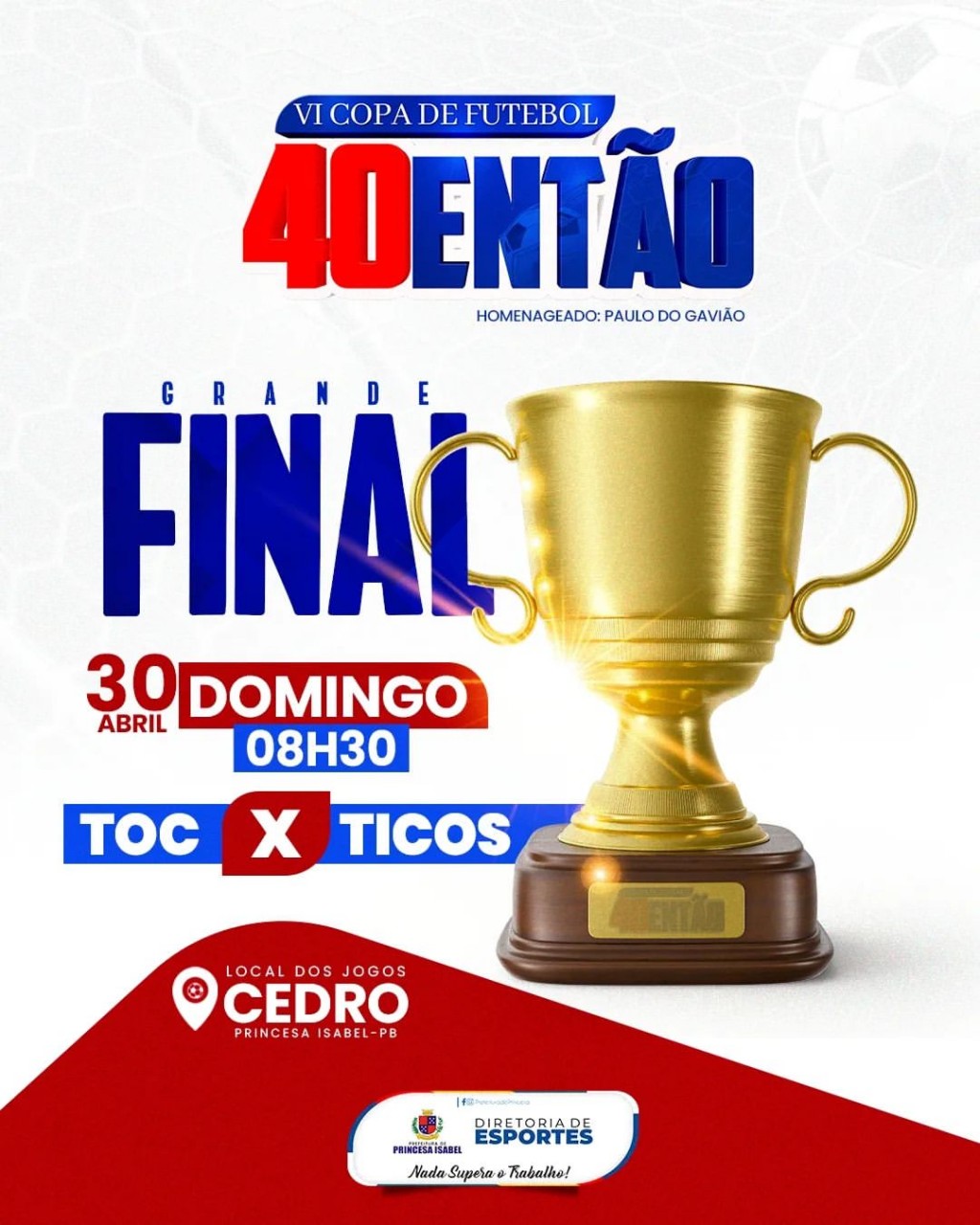 Neste domingo (30) acontece a grande final da VI Copa de Futebol Quarentão, no Cedro.