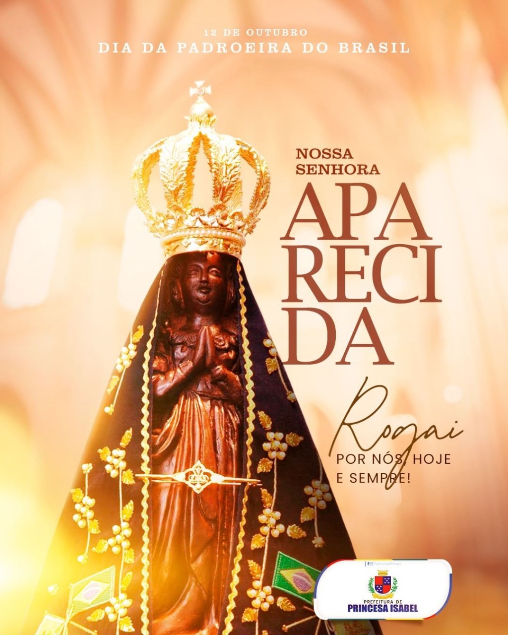 Que Nossa Senhora Aparecida, Padroeira do Brasil, derrame o seu amor e a sua proteção sobre todos os princesenses.