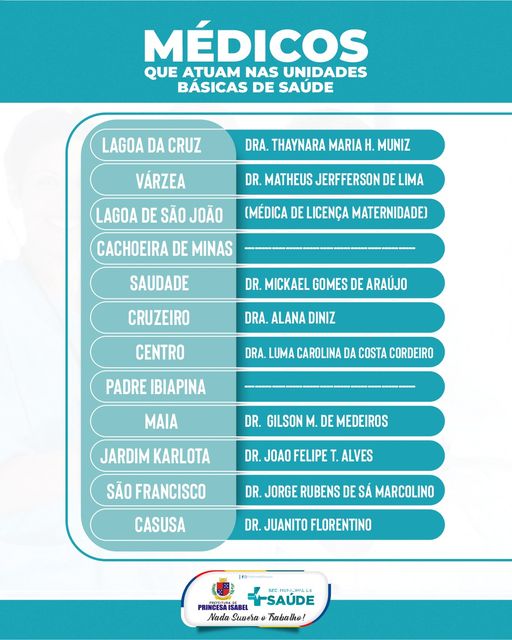 Confira os médicos que atuam em nossas Unidades Básicas de Saúde!