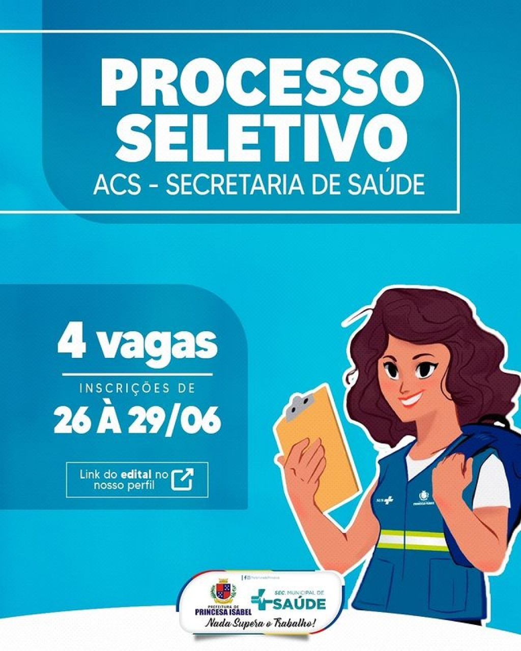 Governo municipal de Princesa lança edital de Processo seletivo para preenchimento de vagas para Agentes Comunitários de Saúde. Inscrições iniciam na segunda-feira (26). Confira!