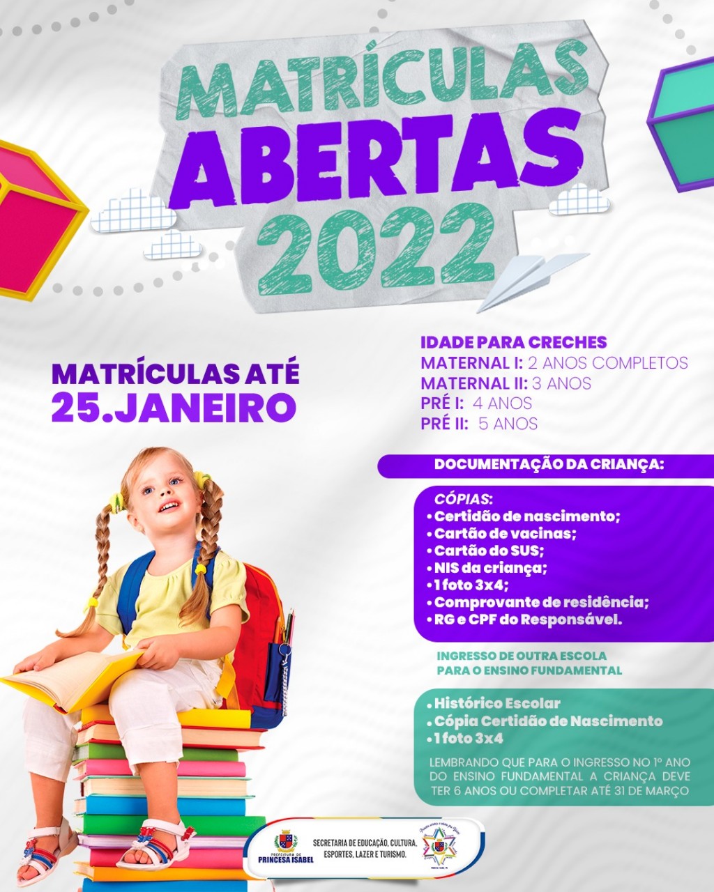 As matrículas da Rede Municipal de Educação estão abertas. Matricule o seu filho e deixe ele fazer parte dessa história de sucesso!