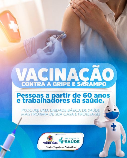 VACINAÇÃO CONTRA A GRIPE E SARAMPO A PARTIR DE 60 ANOS E TRABALHADORES DA SAÚDE.