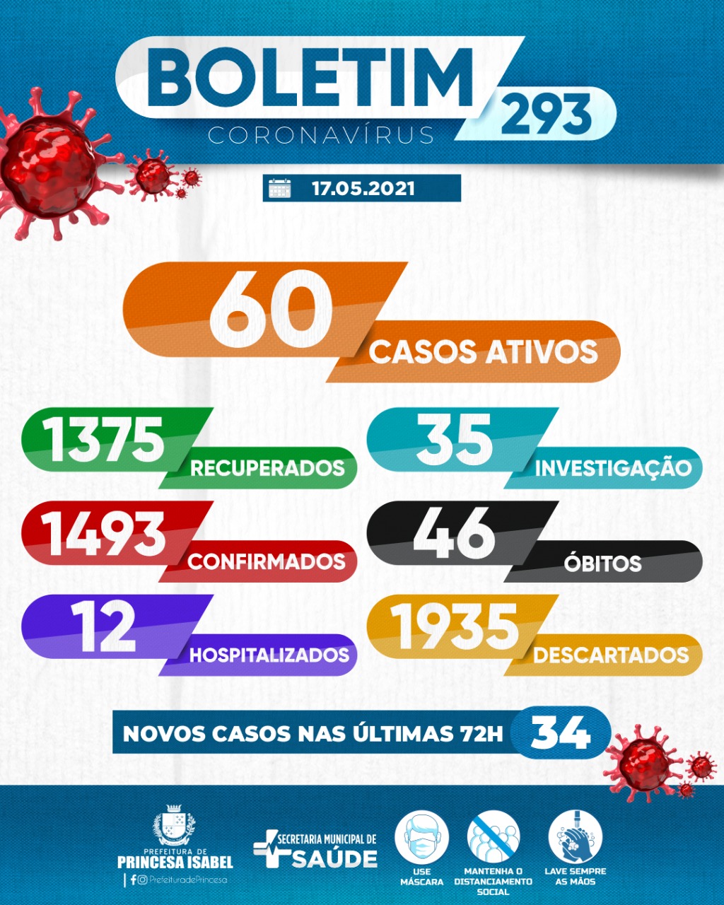 6. O uso de máscaras é obrigatório em todo o município de Princesa Isabel, conforme decreto editado e publicado na íntegra na página oficial do governo municipal e redes sociais da prefeitura.
