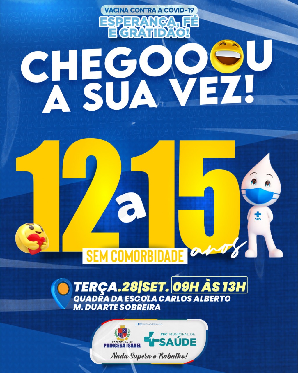 CHEGOU A SUA VEZ! VACINAÇÃO DE 12 A 15 ANOS SEM COMORBIDADE