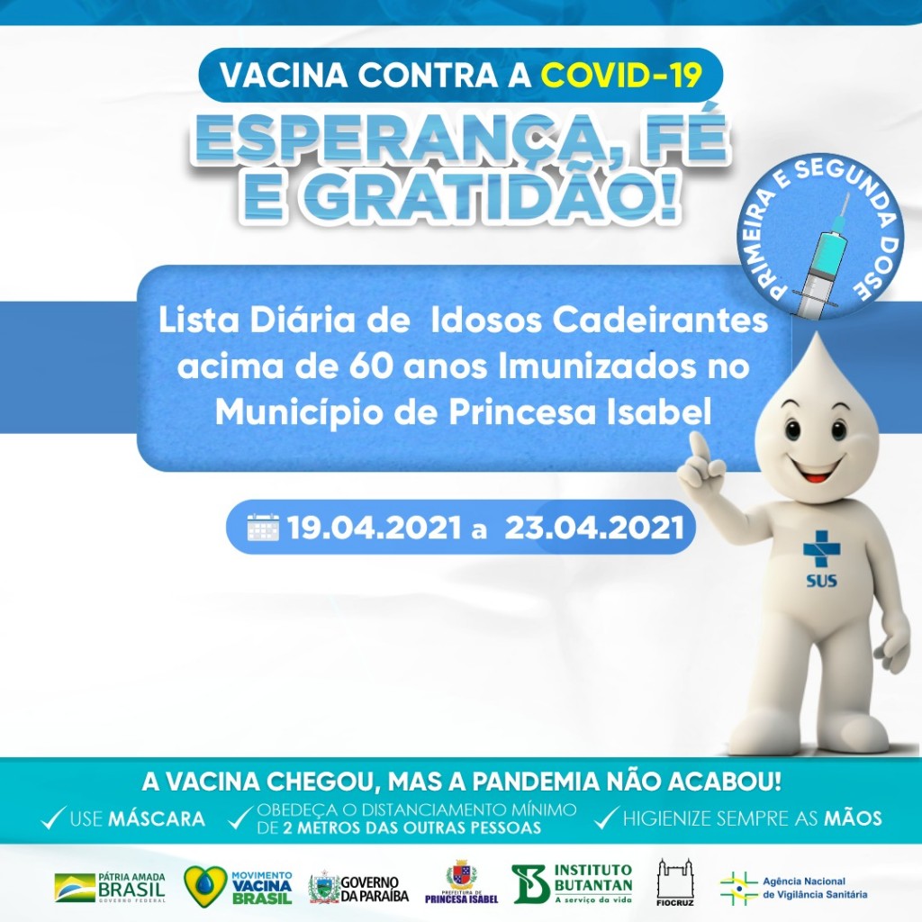 PARA TER ACESSO A LISTA DE IDOSOS VACINADOS COM PRIMEIRA E SEGUNDA DOSE, DO DIA 19 AO DIA 23/04 CLIQUE NO LINK ABAIXO.