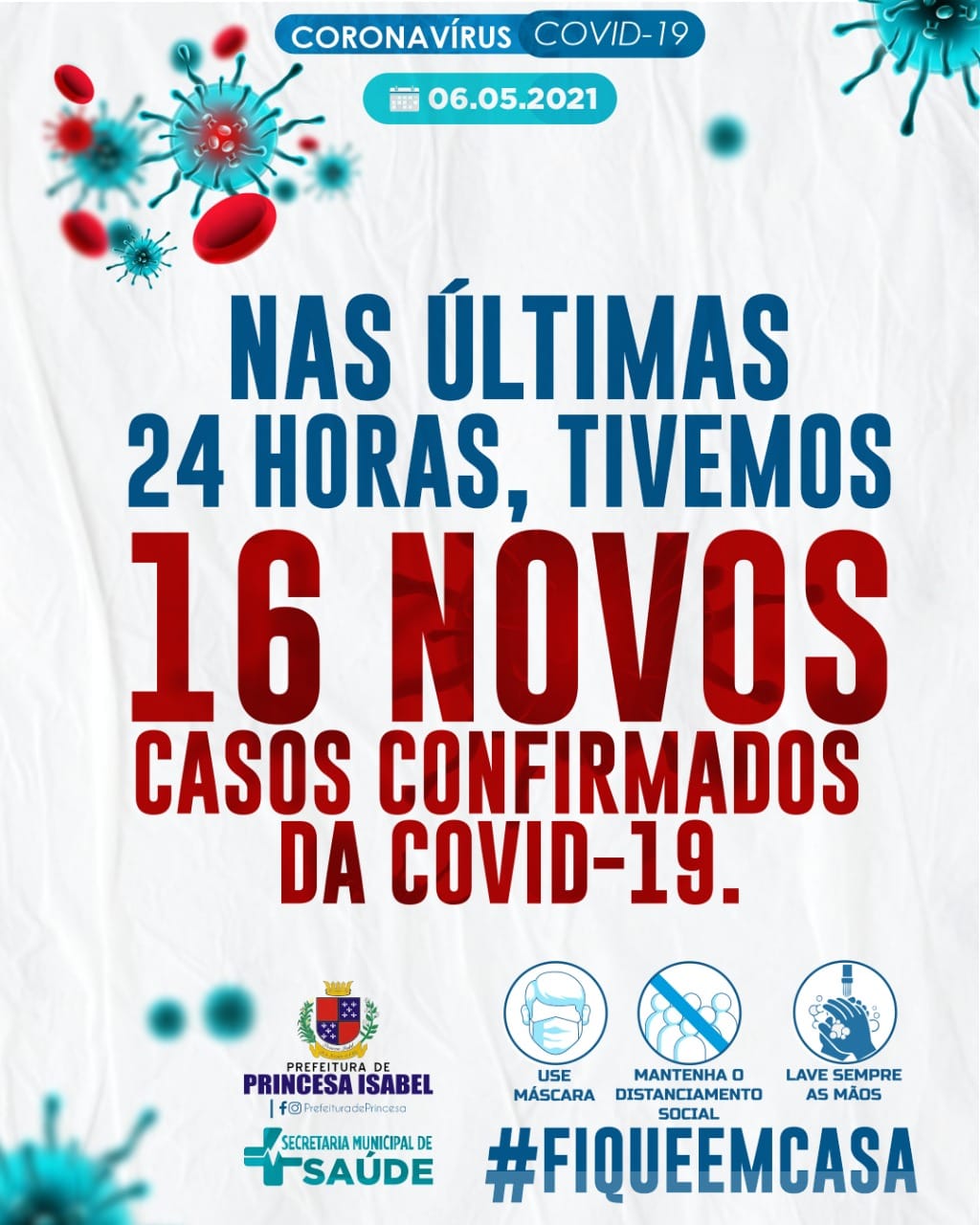 NAS ÚLTIMAS 24 HORAS, TIVEMOS 16 NOVOS CASOS CONFIRMADOS DA COVID-19