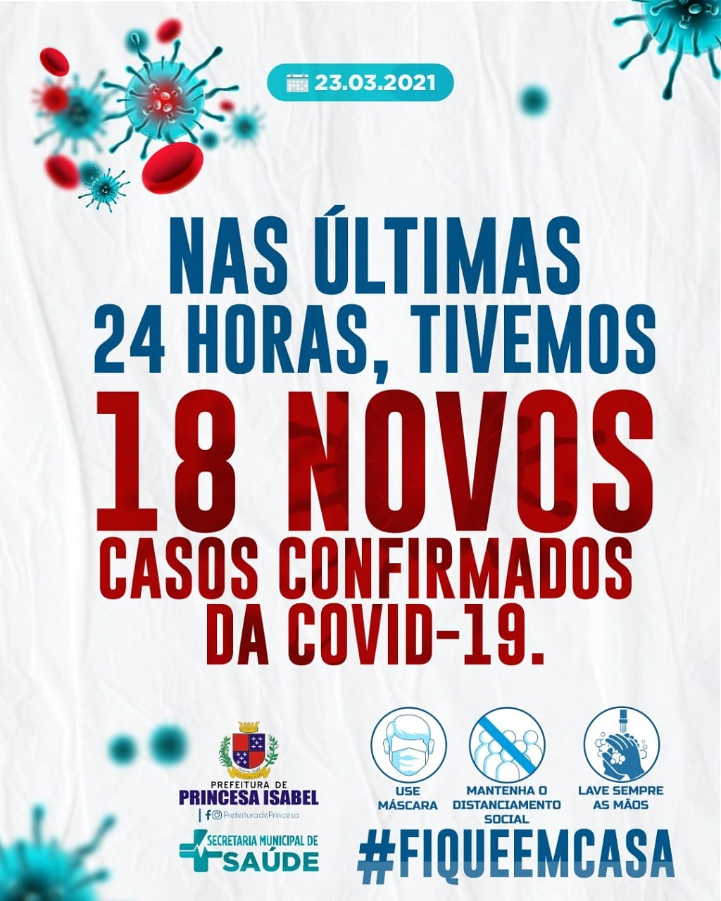 NAS ÚLTIMAS 24 HORAS, TIVEMOS 18 NOVOS CASOS CONFIRMADOS DA COVID-19.