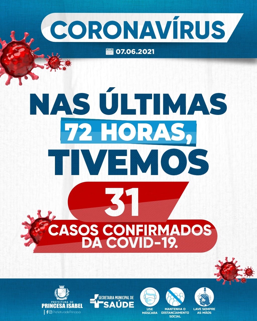 NAS ÚLTIMAS 72 HORAS, TIVEMOS 31 CASOS CONFIRMADOS DA COVID-19.