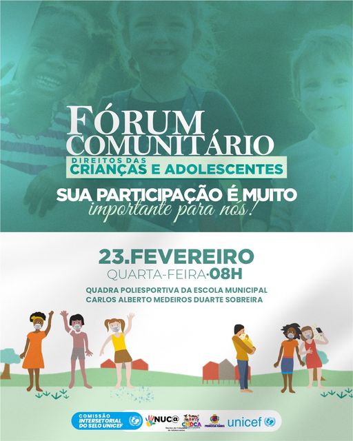 A realização do Fórum é obrigatória na corrida pela conquista do Selo Unicef, que é onde o município assume o compromisso de manter a agenda de suas políticas públicas pela infância e adolescência como prioridade.