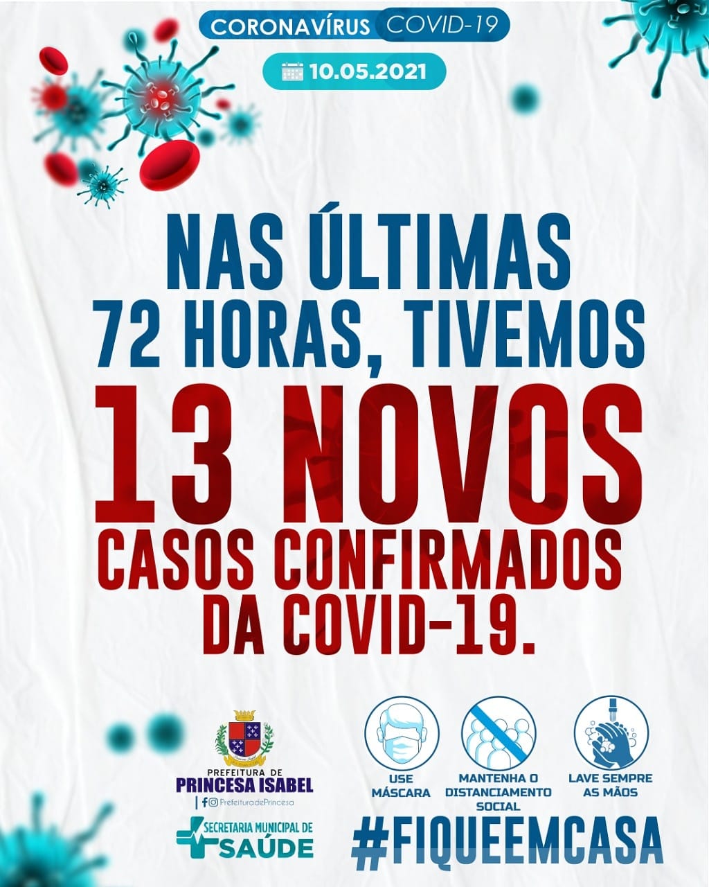 NAS ÚLTIMAS 72 HORAS, TIVEMOS 13 NOVOS CASOS CONFIRMADOS DA COVID-19.