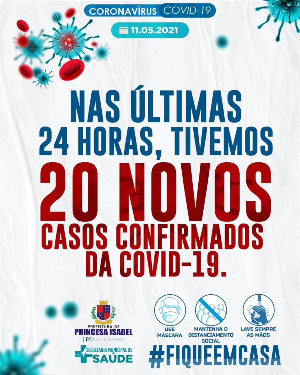 NAS ÚLTIMAS 24 HORAS, TIVEMOS 20 NOVOS CASOS CONFIRMADOS DA COVID-19.