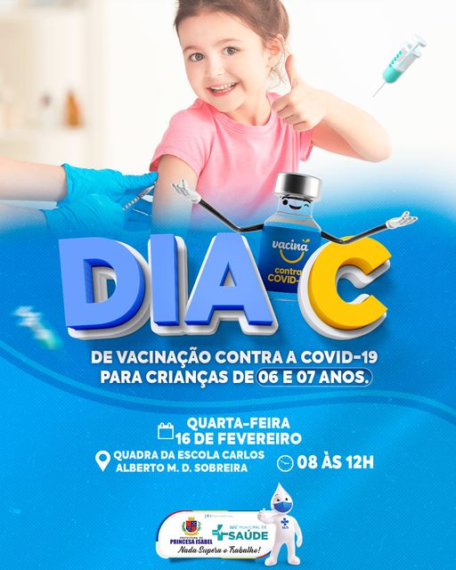Amanhã será a vez das crianças de 06 e 07 anos tomarem a primeira dose da vacina contra a COVID-19. Essa é a nossa principal arma contra a doença que tem devastado o mundo. Então, se você tem filho (a) nessa faixa etária, não deixe de comparecer e garantir essa dose de esperança.